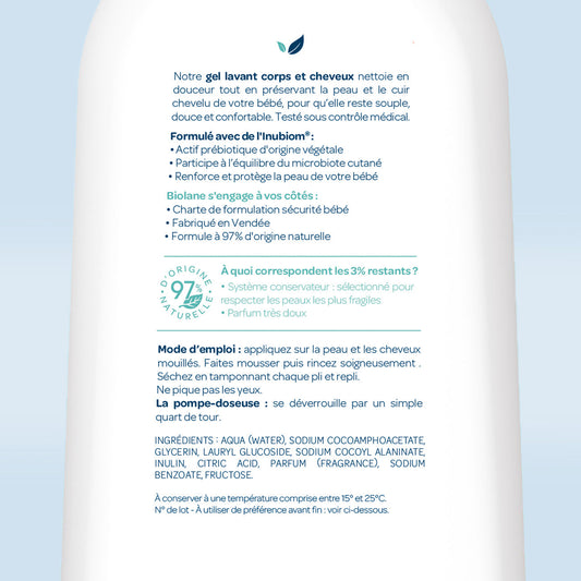Gel de baño 2 en 1 cuerpo y cabello certificado biológico Biolane Expert