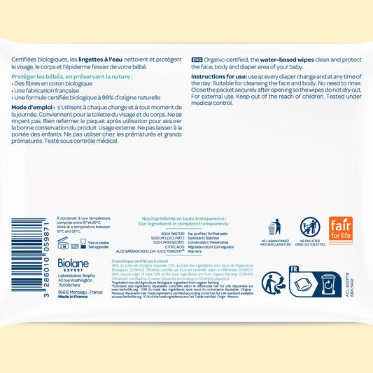 Toallitas de agua certificadas biológicas Biolane Expert