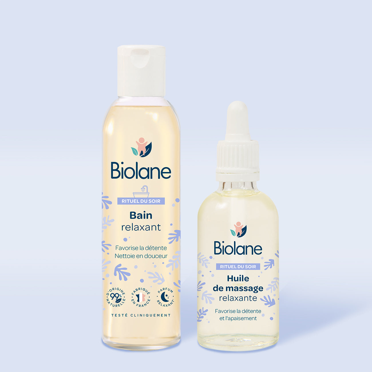 Para acompañarte en cada momento de cuidado de tu bebé desde su nacimiento, hemos desarrollado un ritual de noche en 2 pasos, con una fragancia suave elegida por sus propiedades calmantes y relajantes.