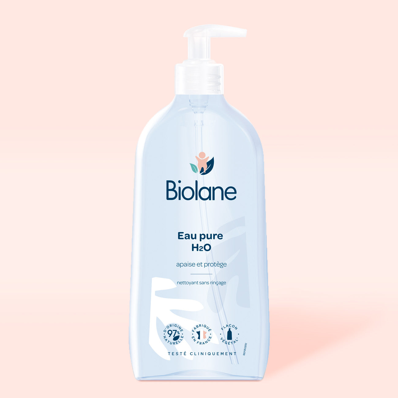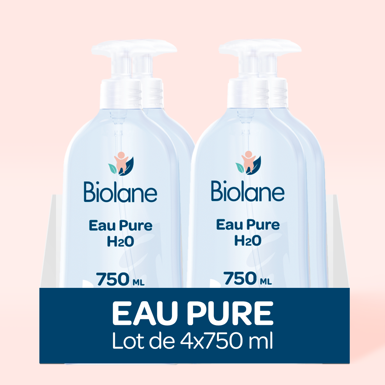 Lote de 4x Agua Pura H2O: el agua de limpieza Agua Pura H2O de Biolane limpia perfectamente y con suavidad el rostro, el cuerpo y la zona del pañal de tu bebé, dejando la piel limpia y delicadamente perfumada.