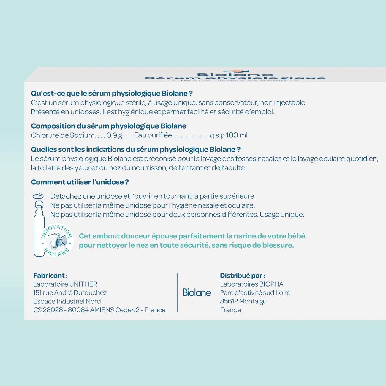 El suero fisiológico Biolane es un suero fisiológico estéril, de un solo uso, sin conservantes y no inyectable.
