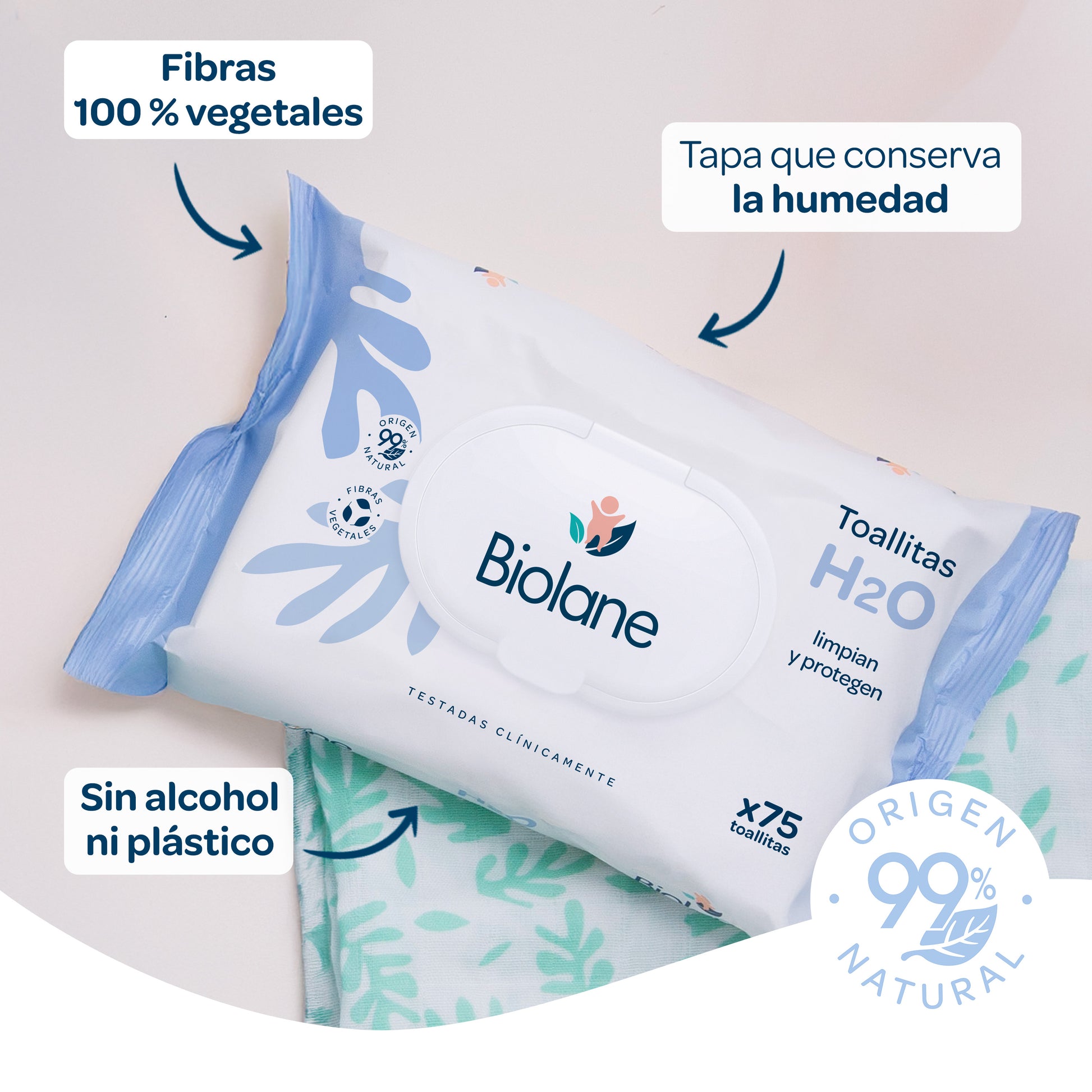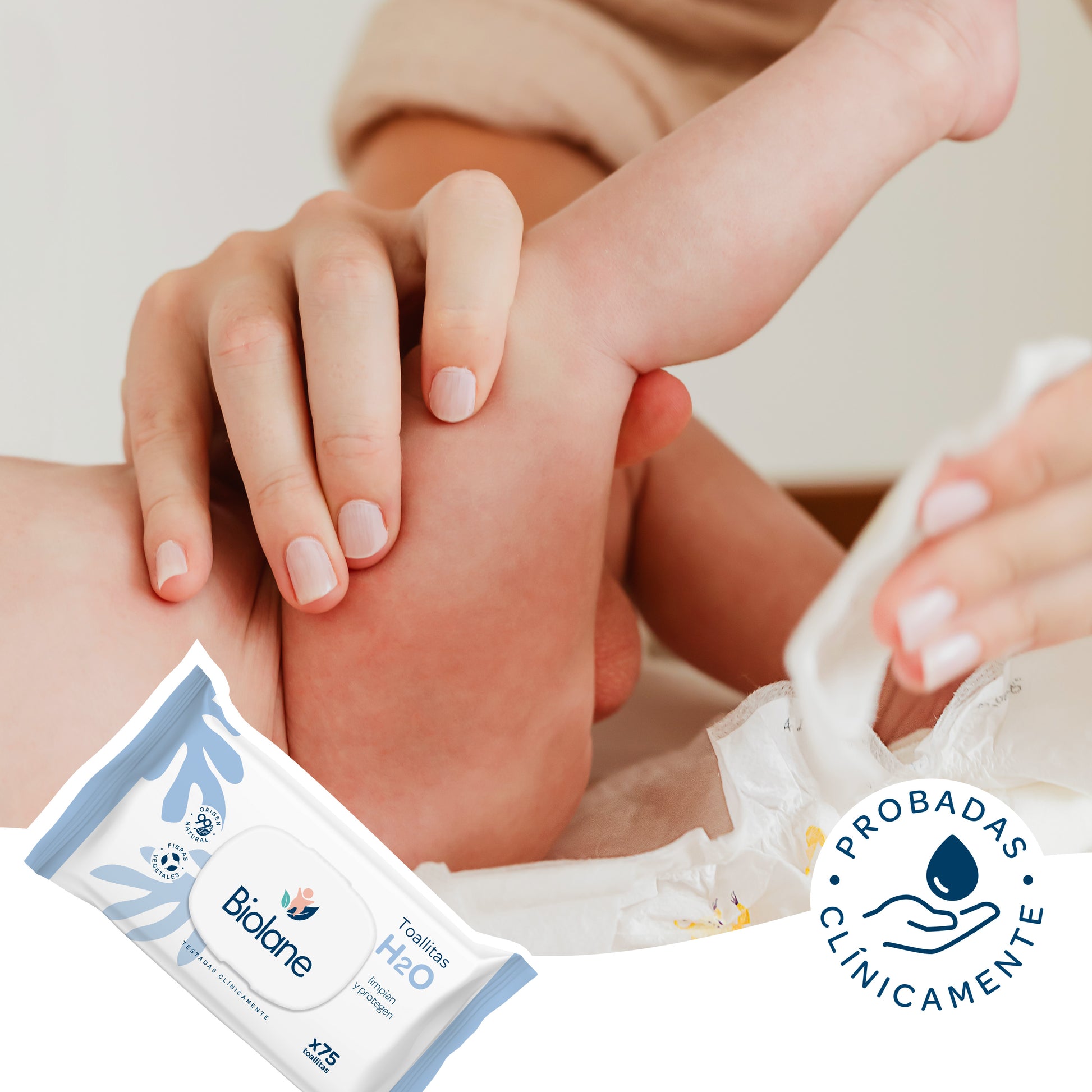 Las toallitas H2O Biolane limpian y protegen el culito, el cuerpo y el rostro de tu bebé en un solo paso, preservando el equilibrio natural de la piel.