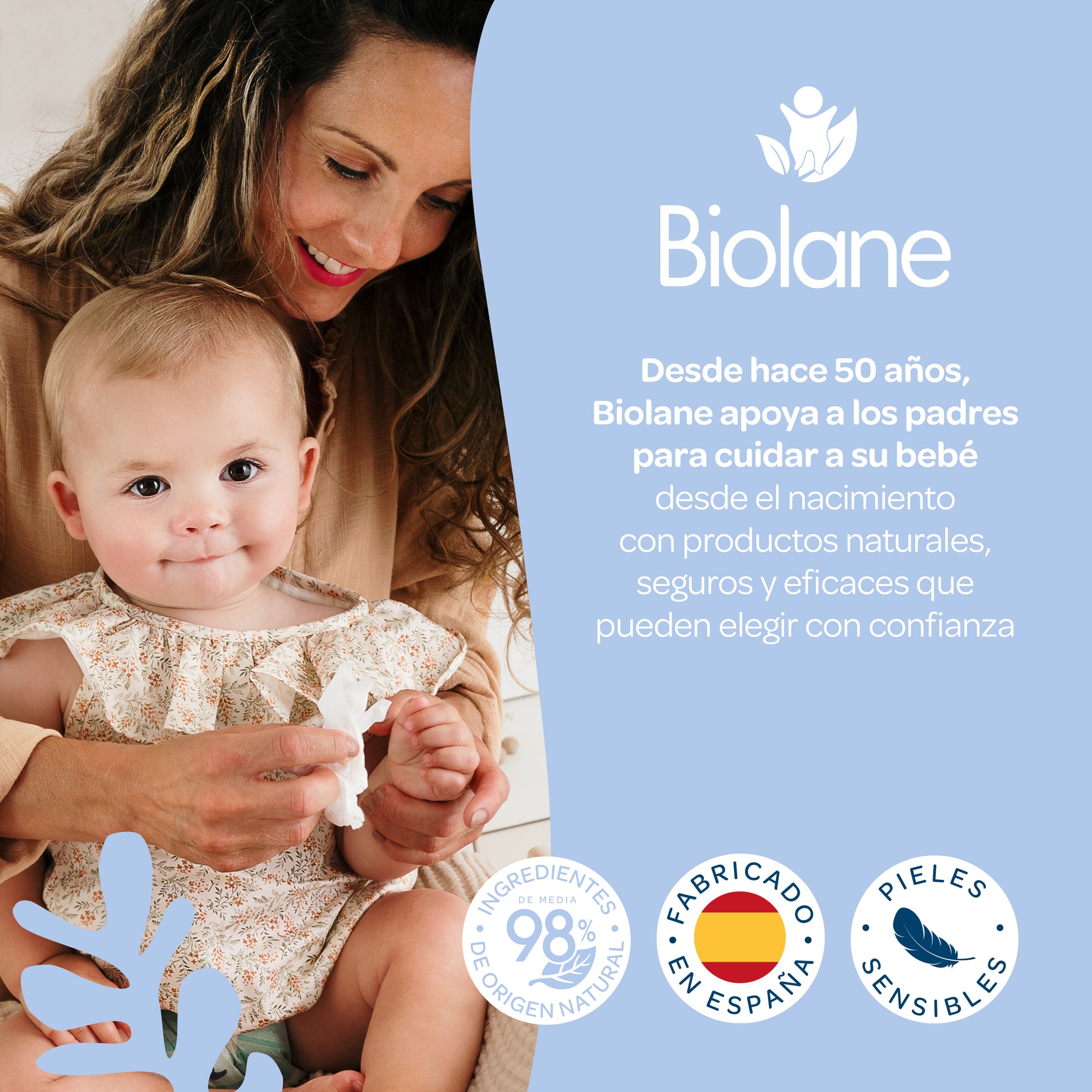 Desde hace 50 años, Biolane acompaña a los padres desde el nacimiento de su bebé con una amplia gama de productos de higiene y cuidado, natural y segura, que pueden elegir con total confianza para proteger la piel de su bebé, y al mismo tiempo cuidar el medio ambiente. Todos nuestros productos están diseñados para responder a tres principios fundamentales: experiencia, naturalidad y suavidad.