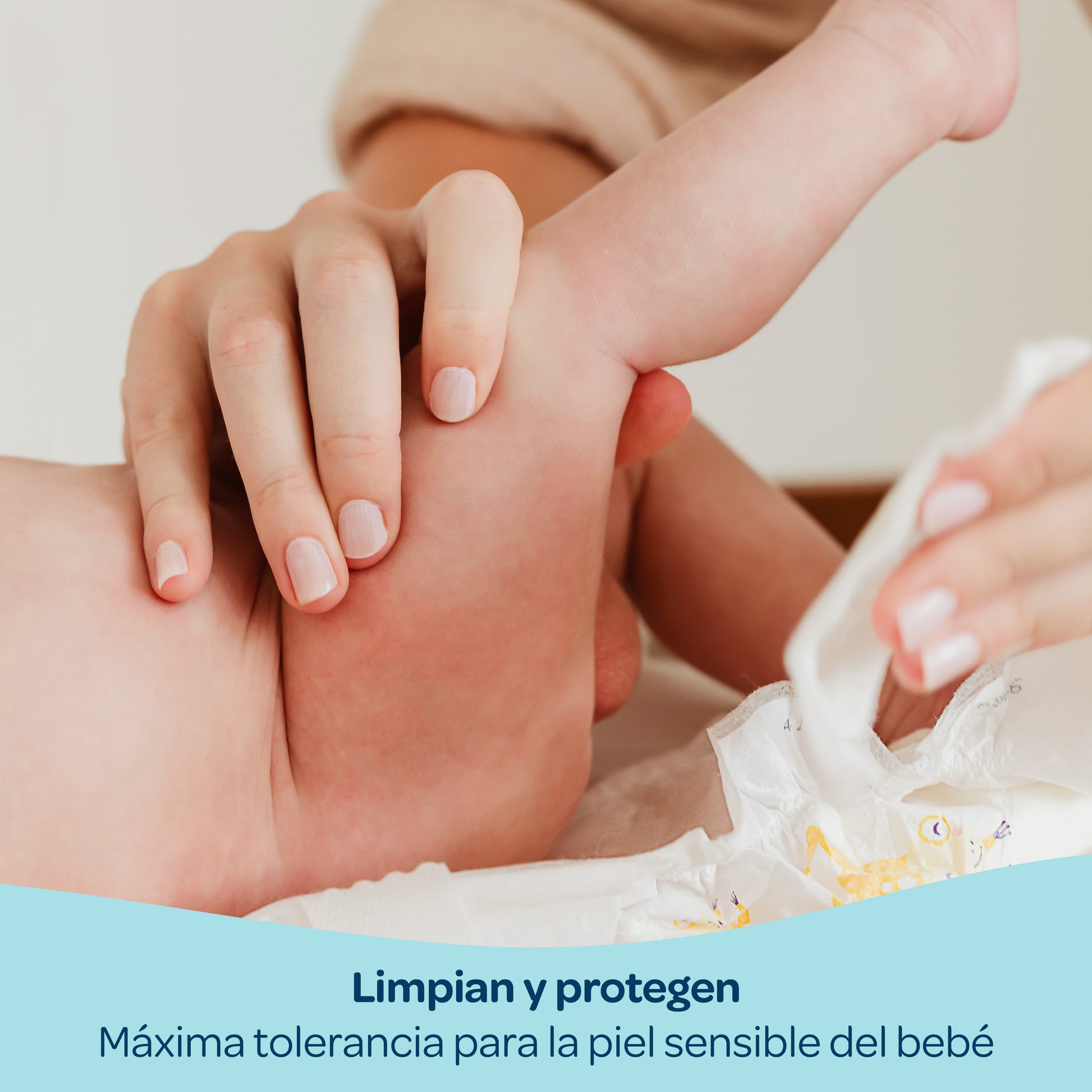 - Toallitas sin perfume, con solo 4 ingredientes y un 99 % de agua purificada, para las pieles más delicadas.